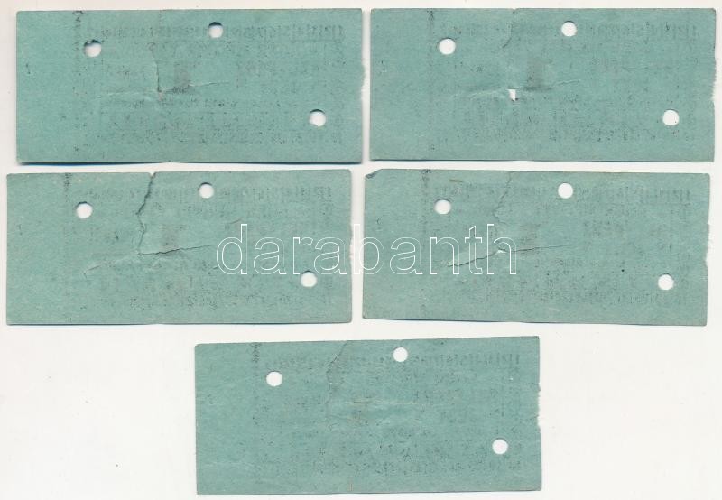 Leírás: ~1935. 1P "Eger Megyei Város helypénzjegy" (5x) sorszámkövetők, lyukasztással és betépéssel érvénytelenítve T:III