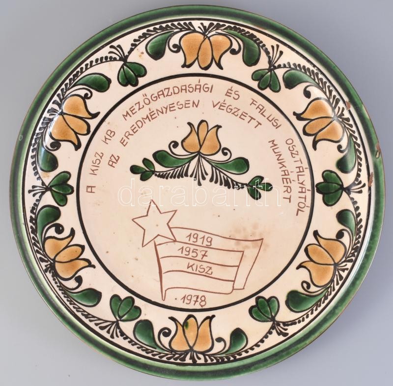 Népi fali dísztányér "A KISZ KB MEZŐGAZDASÁGI ÉS FALUSI OSZTÁLYÁT... https://www.darabanth.com/hu/400-Gyorsarveres/400.0/Porcelan-keramia-uveg/Keramiak~500003/Nepi-fali-disztanyer-A-KISZ-KB-MEZOGAZDASAGI-ES-FALUSI-OSZTALYATOL-AZ-EREDMENYESEN-VEGZ~II2453822