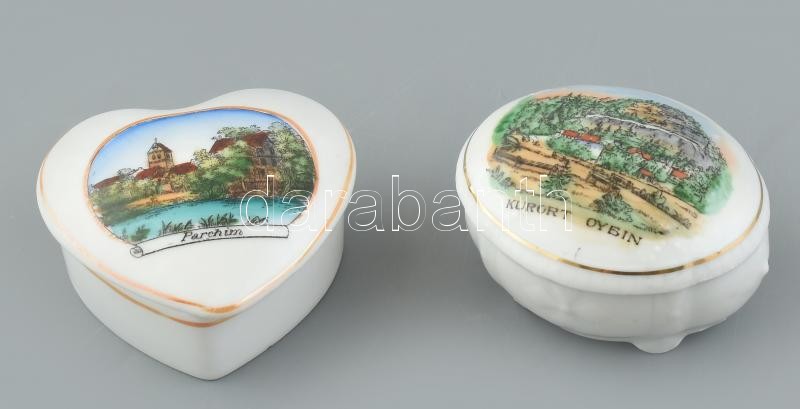 Leírás: 2 db német városképes porcelán dobozka, matricás, jelzés nélkül, kis kopásnyomokkal, 7x6,5x3,5 cm és 7x6x4,5 cm