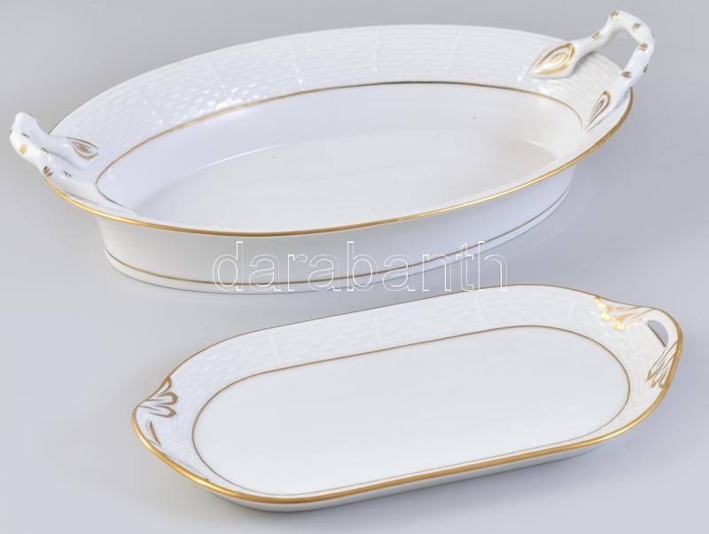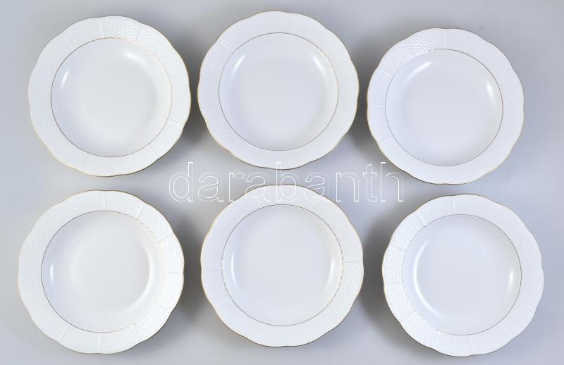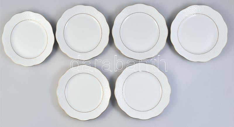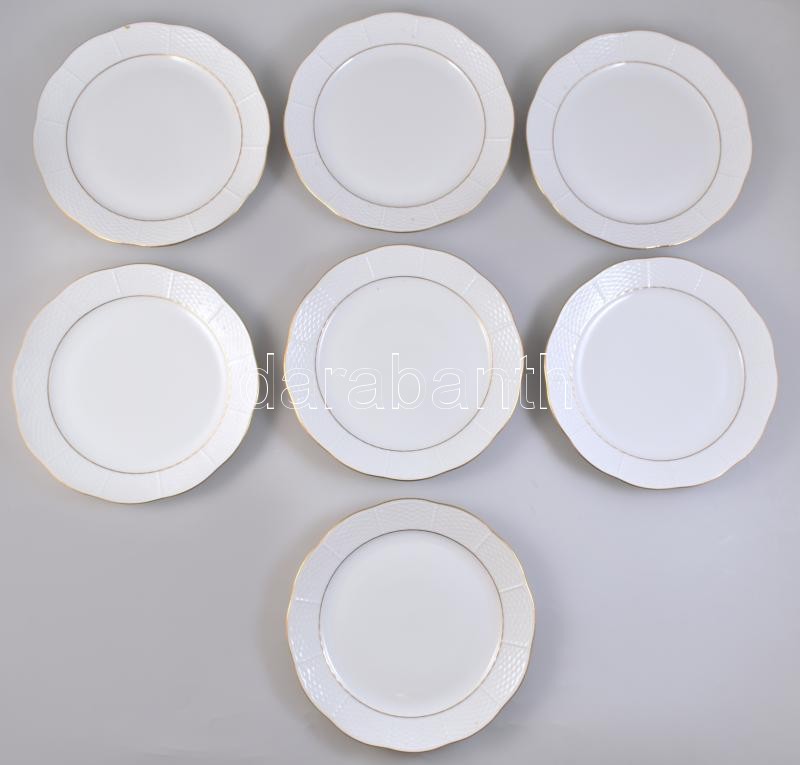 Leírás: Herendi fehér, aranyozott szélű, hiányos étkészlet, kézzel festett, jelzett, hibátlan, különböző méretben.
