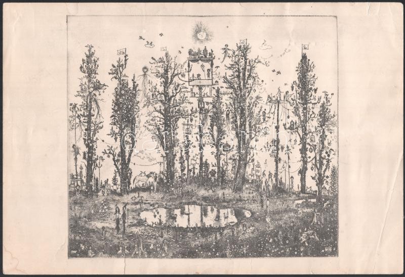 Leírás: Gross Arnold (1929-2015): Az öröm ünnepe. Ofszet nyomat, papír, jelzett a nyomaton. Sérült. Az 1973-ban megjelent Corvina mappából. 25x27,5 cm