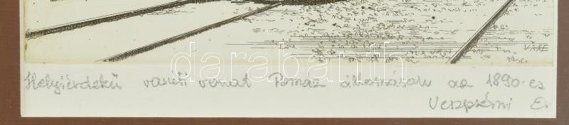 Leírás: Veszprémi Endre (1925- ): Pomáz HÉV a vasútállomáson az 1890-es években rézkarc, papír, jelzett, üvegezett keretben 12x14 cm