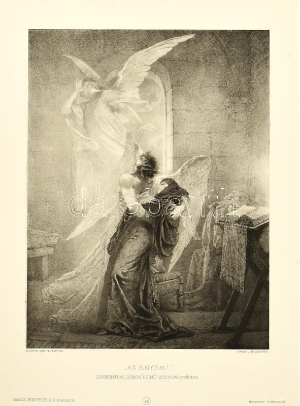 cca 1890-1900 Zichy Mihály (1827-1906), össz. 5 db illusztráció Lermontow költeményeihez: "Az enyém!", A csók, A mentő angyal, Biela, Apotheozis. Heliogravűr, papír. Jelzett a heliogravűrön. Bécs, H. O. Miethke kiadása. Hártyapapírral védve. Különböző méretben.