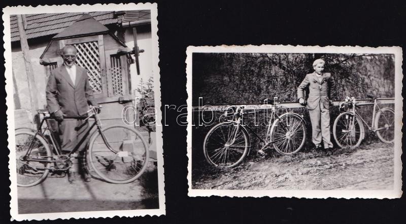 Leírás: cca 1940-1950 Kerékpárosok, 2 db fotó, 6×9 cm
