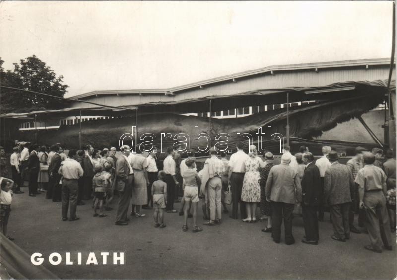 Leírás: Goliath. Riesenwal, 68000 kg. gefangen 1954 in Trondheim Norwegen / Norvégia, óriás bálna / Giant whale captured in Norway (EK)