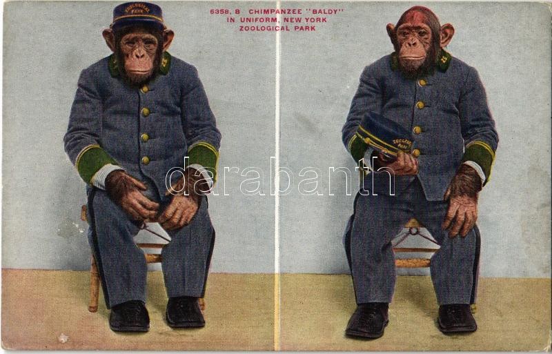 New York City, New York Zoological Park, Chimpanzee "Baldy" ... https://www.darabanth.com/hu/401-Gyorsarveres/401.0/Kepeslapok/Amerikai-Egyesult-Allamok~1500018/New-York-City-New-York-Zoological-Park-Chimpanzee-Baldy-in-uniform~II2116919