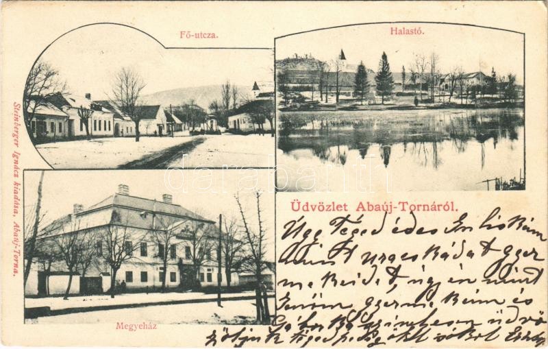 1902 Torna, Abaúj-Torna, Turnau, Turna nad Bodvou; Fő utca, Halastó, m... https://www.darabanth.com/hu/401-Gyorsarveres/401.0/Kepeslapok/Felvidek~1500013/1902-Torna-Abauj-Torna-Turnau-Turna-nad-Bodvou-Fo-utca-Halasto-megyehaz-tel-Steinberger~II2462620