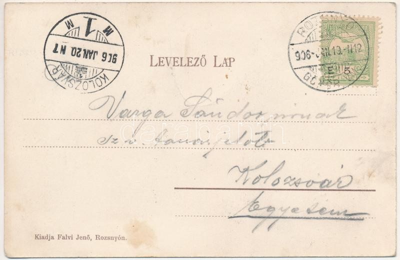 Leírás: 1906 Rozsnyó, Roznava; Zsidó (izraelita) templom, zsinagóga. Falvi Jenő kiadása / synagogue (fa)