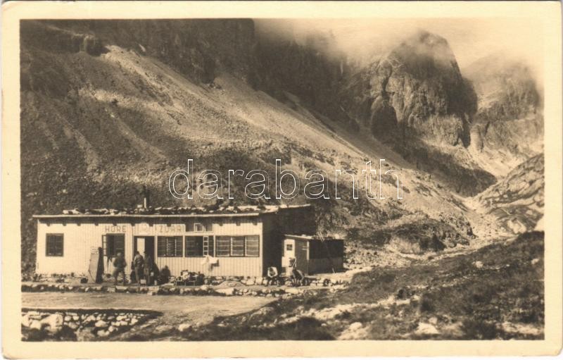 Leírás: 1958 Tátra, Magas-Tátra, Vysoké Tatry; Zbojnická chata vo Velkej Studenej doline / menedékház / tourist house, mountain peaks