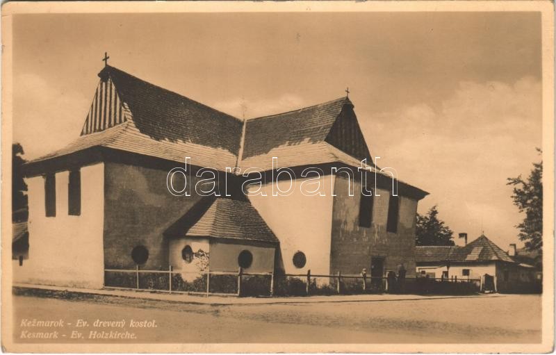 Késmárk, Kezmarok; Evangélikus fatemplom / Lutheran wooden church https://www.darabanth.com/hu/401-Gyorsarveres/401.0/Kepeslapok/Felvidek~1500013/Kesmark-Kezmarok-Evangelikus-fatemplom-Lutheran-wooden-church~II2462563
