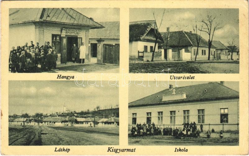Kisgyarmat, Maly Darmoty, Darmotky, Sikenicka; utca, látkép, iskola, Hangya Szövetkezet üzlete és saját kiadása / street view, general view, school, cooperative shop (EK)