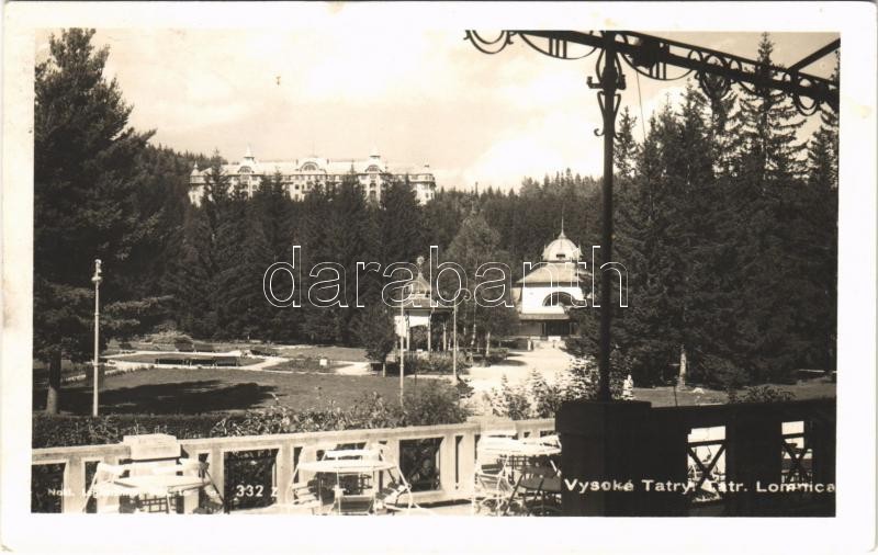 Leírás: Tátralomnic, Tatranská Lomnica (Tátra, Magas Tátra, Vysoké Tatry); látkép / general view (fl)