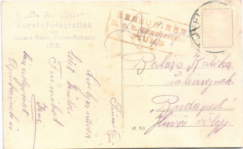 Leírás: 1918 Fiume, Rijeka; kikötő, gőzhajó, Európa nagyszálloda / port, steamship, hotel. "An der Adria" Kunst-Fotografien von Eduard Betai. photo (fl)