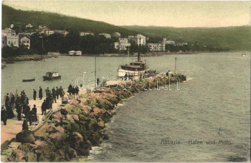 Leírás: Abbazia, Opatija; Hafen und Molo / port, ship. A. Dietrich
