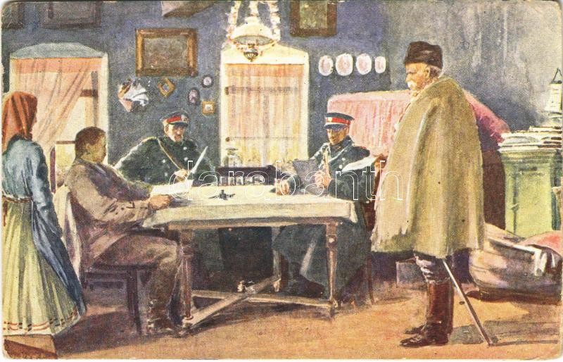 Nase Cetnictvo. Serie 1. (Podkarpatská Rus) U richtáre v Horjanech / Czechoslovak military art postcard, gendarmerie in Transcarpthia s: St. Frcek (EB)