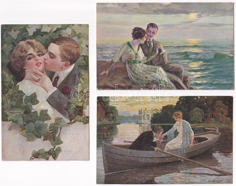 Leírás: 25 db RÉGI motívum képeslap vegyes minőségben: romantikus párok / 25 pre-1945 motive postcards in mixed quality: romantic couples