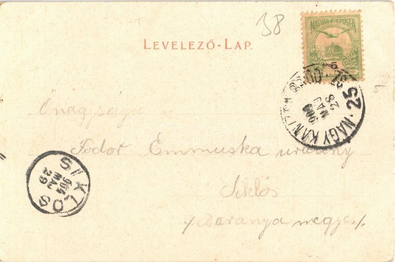 Leírás: 1904 Barcs (Somogy), Római katolikus templom. Özv. Kremszner Mátyásné kiadása + "NAGYKANIZSA-BROD 25." vasúti mozgóposta