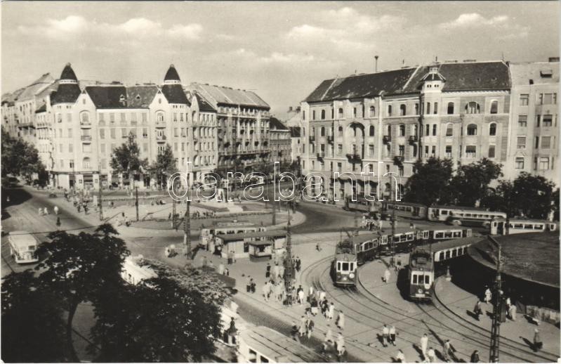 Leírás: Budapest XI. Móricz Zsigmond körtér, villamosok és HÉV megálló. Képzőművészeti Alap Kiadóvállalat