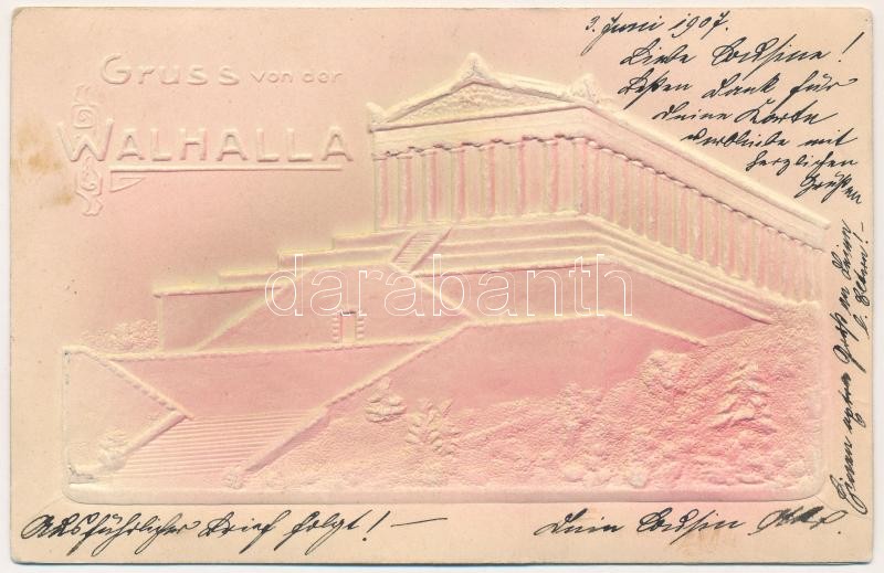 Regensburg, Gruss von der Walhalla. Embossed (gluemark) https://www.darabanth.com/hu/401-Gyorsarveres/401.0/Kepeslapok/Nemetorszag~1500051/Regensburg-Gruss-von-der-Walhalla-Embossed-gluemark~II2463331