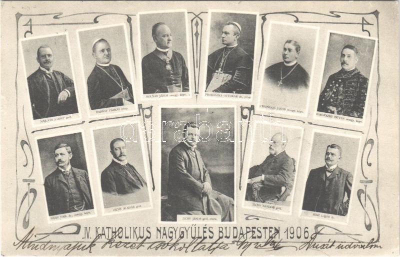 1906 IV. Katolikus Nagygyűlés Budapesten. Prohászka Ottokár, Majláth József, Zichy Aladár, Zichy János, Molnár János, Csernoch János, Radnay Farkas, Nagy Emil, Zichy Nándor, Mike Lajos, Rakovszky István / IV. Catholic Congress in Budapest. Art Nouveau frame