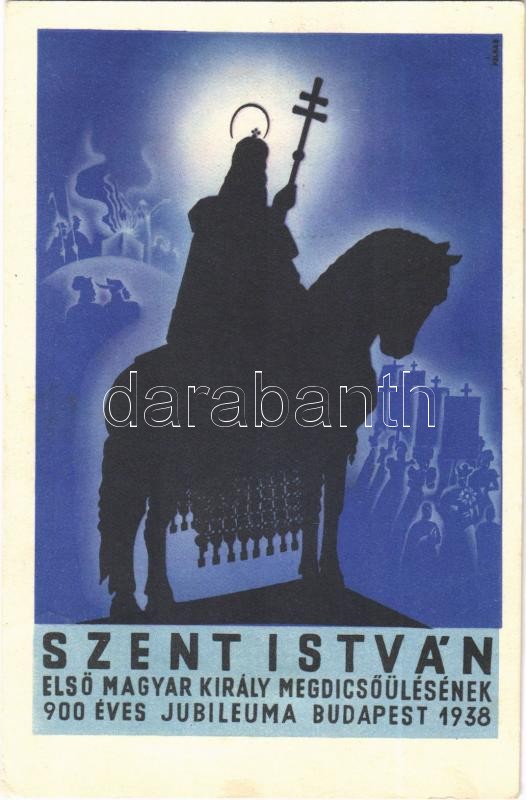1938 Budapest XXXIV. Nemzetközi Eucharisztikus Kongresszus. Készüljünk a Magyar Kettős Szentévre! Szent István első magyar király megdicsőülésének 900 éves jubileuma / 34th International Eucharistic Congress s: Kálna B. (ragasztónyom / glue marks)