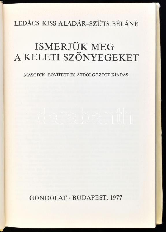 Ledács Kiss Aladár, Szüts Béláné: Ismerjük meg a keleti szőnyegekett. Bp., 1977, Gondolat. Második kiadás. Számos fekete-fehér és színes képpel illusztrálva. Kiadói egészvászon-kötés, kissé sérült kiadói papír védőborítóban.