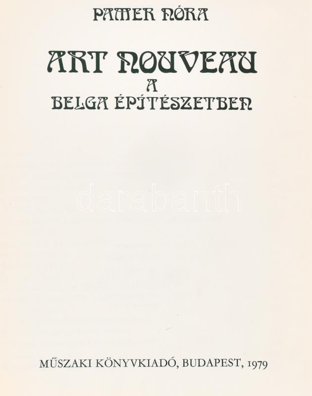 Pamer Nóra: Art nouveau a belga építészetben. Bp.,1979., Műszaki Könyvkiadó. 207 p. Gazdag fekete-fehér képanyaggal illusztrált. Kiadói egészvászon-kötés, kissé foltos borítóval.