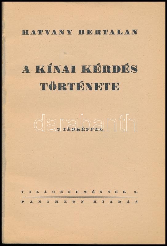 Hatvany Bertalan: A kínai kérdés története. Bp., Pantheon. Kiadói papí... https://www.darabanth.com/hu/401-Gyorsarveres/401.0/Konyvek/Konyvek-Tortenelem~1000005/Hatvany-Bertalan-A-kinai-kerdes-tortenete-Bp-Pantheon-Kiadoi-papirkotes-belul-a-geri~II2465623