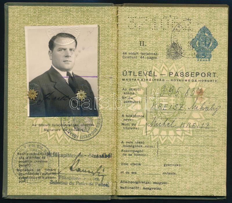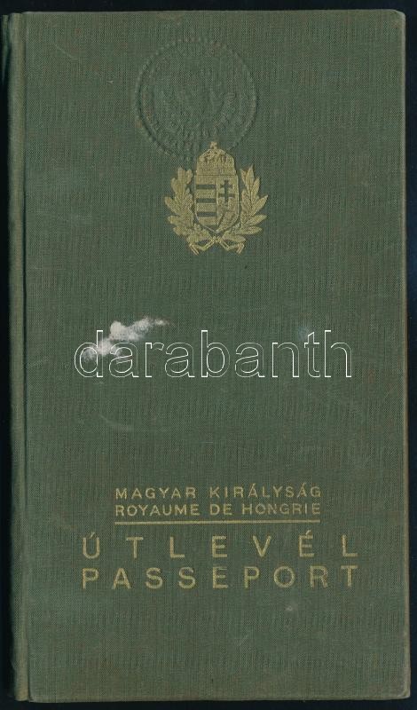 1940 Magyar Királyság által kiállított fényképes útlevél / Hungarian p... https://www.darabanth.com/hu/401-Gyorsarveres/401.0/Magyar-filatelia-es-postatortenet/Okmanyok~500017/1940-Magyar-Kiralysag-altal-kiallitott-fenykepes-utlevel-Hungarian-passport~II2461891