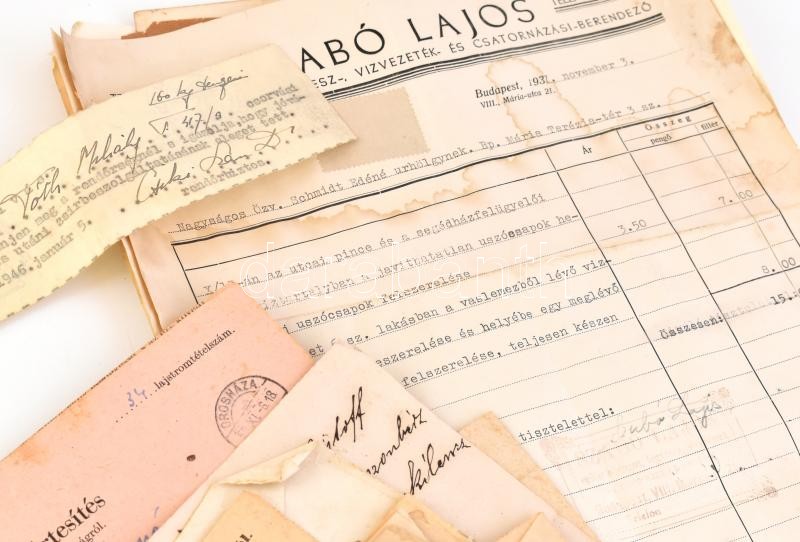 Leírás: Vegyes papírrégiség tétel (számlák, fizetési értesítés, stb.)