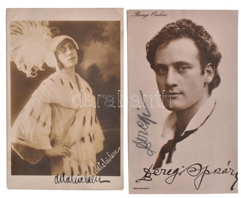 Leírás: 2 db aláírás fotón: Asta Nielsen (1881-1972) dán némafilm színésznő + Beregi Oszkár (1876-1965) színész