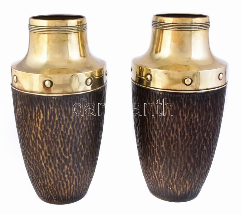 Leírás: 2 db art deco réz váza, jó állapotban, m: 31 cm