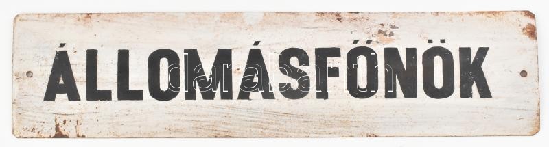 Leírás: Állomásfőnök zománc tábla sérült 10x40 cm