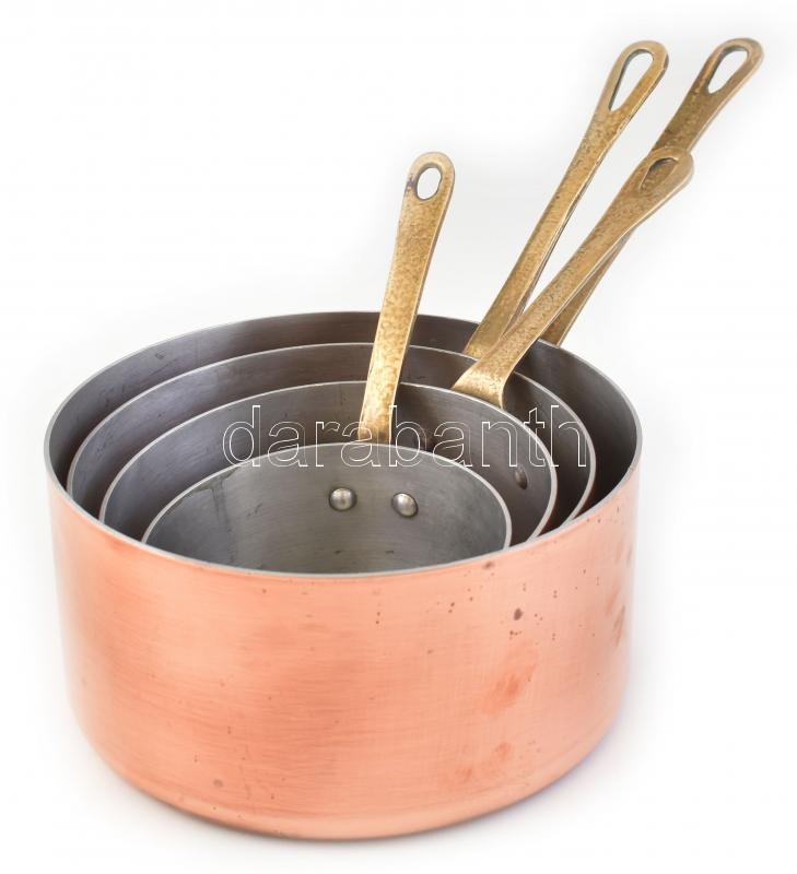 Leírás: Alumínium testű, réz nyelű lábos szett, 4 db, d: 9-16 cm között