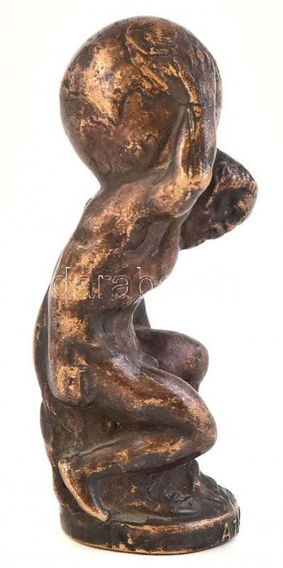 Leírás: Atlasz bronz figura, jelzés nélkül, m: 9 cm