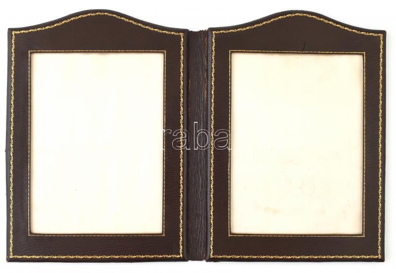 Leírás: Bőr fényképtartó, kopott, sérült, 17x13cm