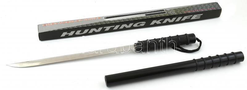 Leírás: Óriás vadász kés, tőr, fém markolattal, rácsavarható fém hüvellyel 56 cm eredeti dobozában