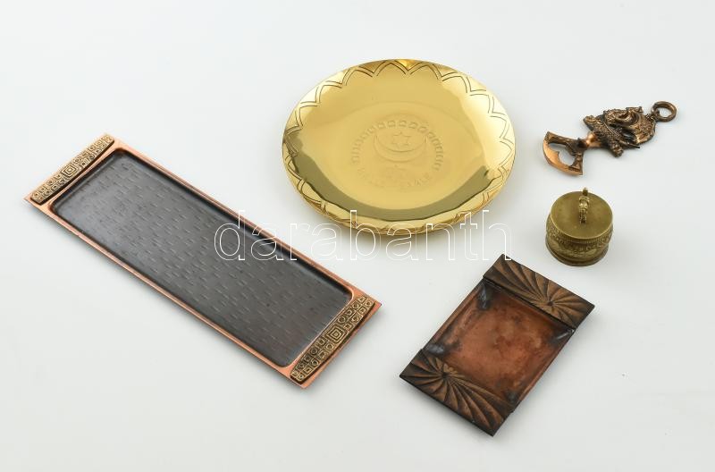 Leírás: Réz tárgyak tétele. Iparművész tál + egyebek