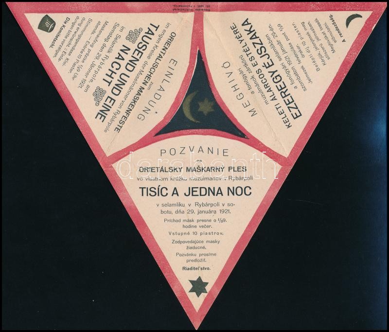 1921 Rózsahegy, meghívó a muzulmánok zártkörű keleti álarcos estélyére https://www.darabanth.com/hu/401-Gyorsarveres/401.0/Mutargy-papirregiseg-egyeb/Nyomtatvanyok~500030/1921-Rozsahegy-meghivo-a-muzulmanok-zartkoru-keleti-alarcos-estelyere~II2460678