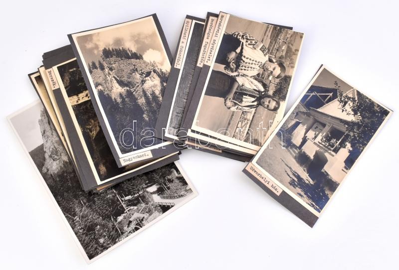 Leírás: cca 1940 Erdélyi tájak kb 25 db kép egy fotóval, feliratozva, kartonlapokon képeslap méretben