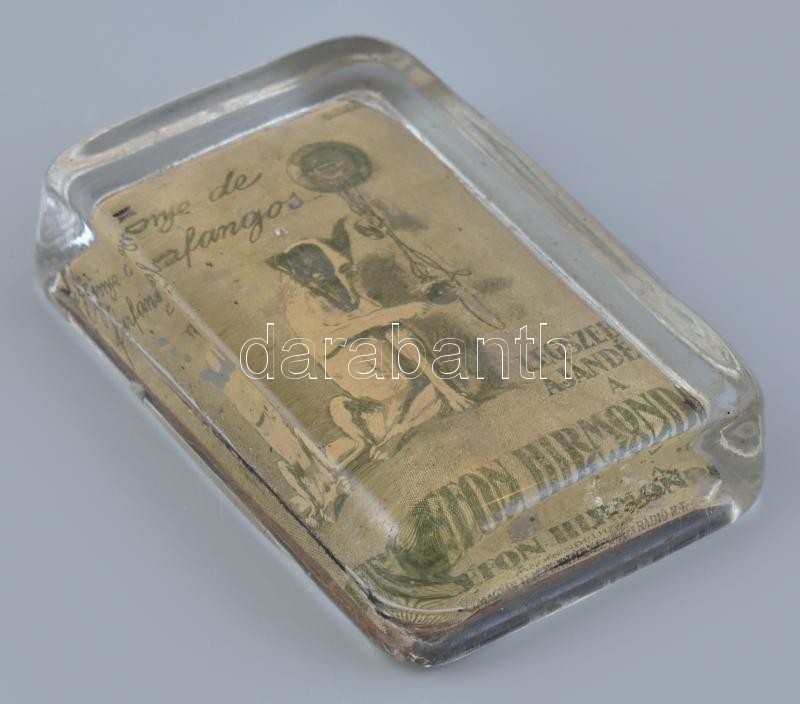Leírás: cca. 1910 Üveg levélnehezék, (A legszebb ajándék a telefon hírmondó) 11x6,5x3cm