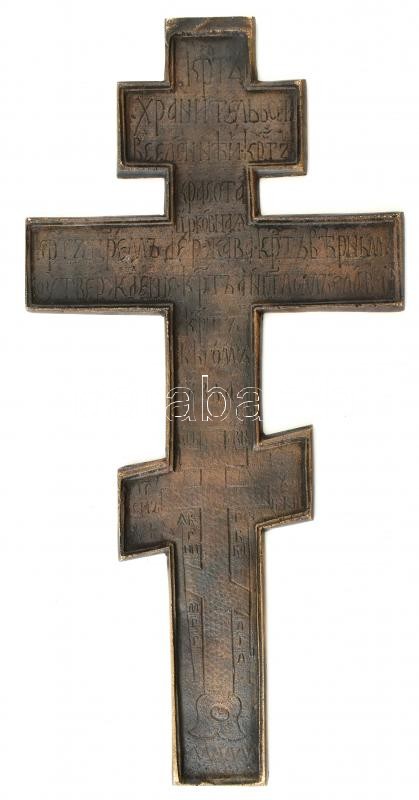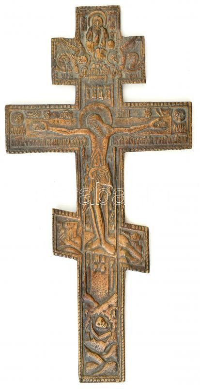 Leírás: Bronz ortodox kereszt figurális díszítéssel XIX. sz. 27 cm