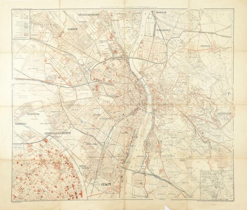 Leírás: Budapest térképe, kiadja: Magyar Földrajzi Intézet, szakadásokkal, 77×94 cm