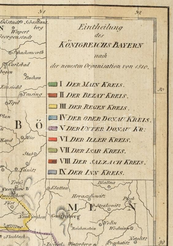 Charte vom Königreich Bayern Prag, 1813. Bajorország térképe. Határszí... https://www.darabanth.com/hu/401-Gyorsarveres/401.0/Mutargy-papirregiseg-egyeb/Terkepek~500028/Charte-vom-Konigreich-Bayern-Prag-1813-Bajororszag-terkepe-Hatarszinezett-rezmetszetu-te~II2459632