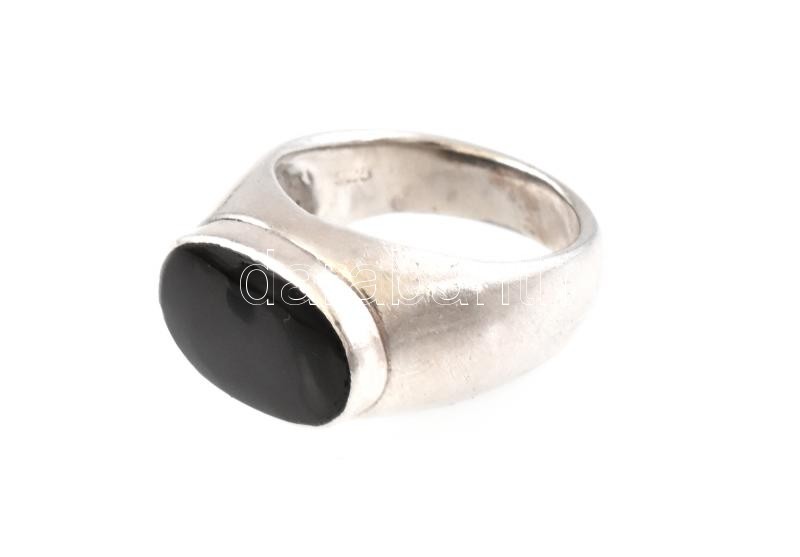 Leírás: Ezüst (Ag) gyűrű, fekete kővel, jelzett, méret: 52, bruttó: 7,96 g