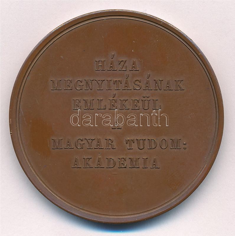 Carl Radnitzky (1818-1901) 1865. "A Magyar Tudományos Akadémia megnyitásának 40. évfordulójára" Br emlékérem. "XI. DEC: MDCCCLXV / HÁZA MEGNYITÁSÁNAK EMLÉKEÜL A MAGYAR TUDOM: AKADÉMIA" (51mm) T:1- apró ph.