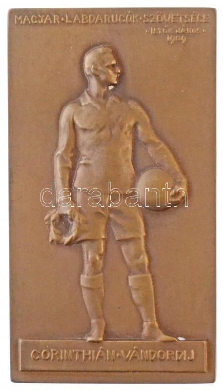 Istók János (1873-1972) 1909. "Magyar Labdarúgók Szövetsége - Corinthián Vándordíj" egyoldalas Br plakett, hátoldalán gravírozva "MAGYAR FOOTBALL ÚTTÖRŐINEK", eredeti dísztokban (144,95g/91x50,5mm) T:1- / Hungary 1909. "Corinthián Award - Hungarian Football Association" one-sided Br plaque in original case. Sign: János Istók (91x50,5mm) C:AU