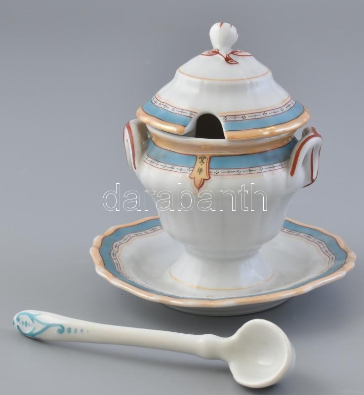 Leírás: Antik kézzel festett porcelán mustár tartó, jelzés nélkül, kopott, m:13cm