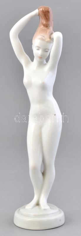 Leírás: Aquincum porcelán akt szobor. Kézzel festett, jelzett, hibátlan. 23 cm