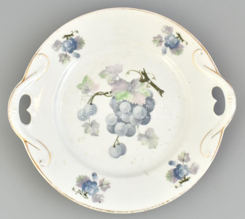 Leírás: Csehszlovák szőlőmintás porcelán tál, matricás, jelzett, kopásnyomokkal, d: 27 cm